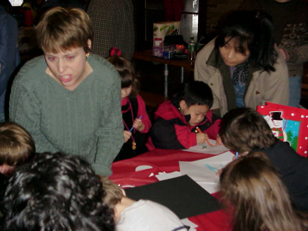 Tracy VanDewerker shows off her Christmas eyes as Austin Weng gets busy on his artwork
