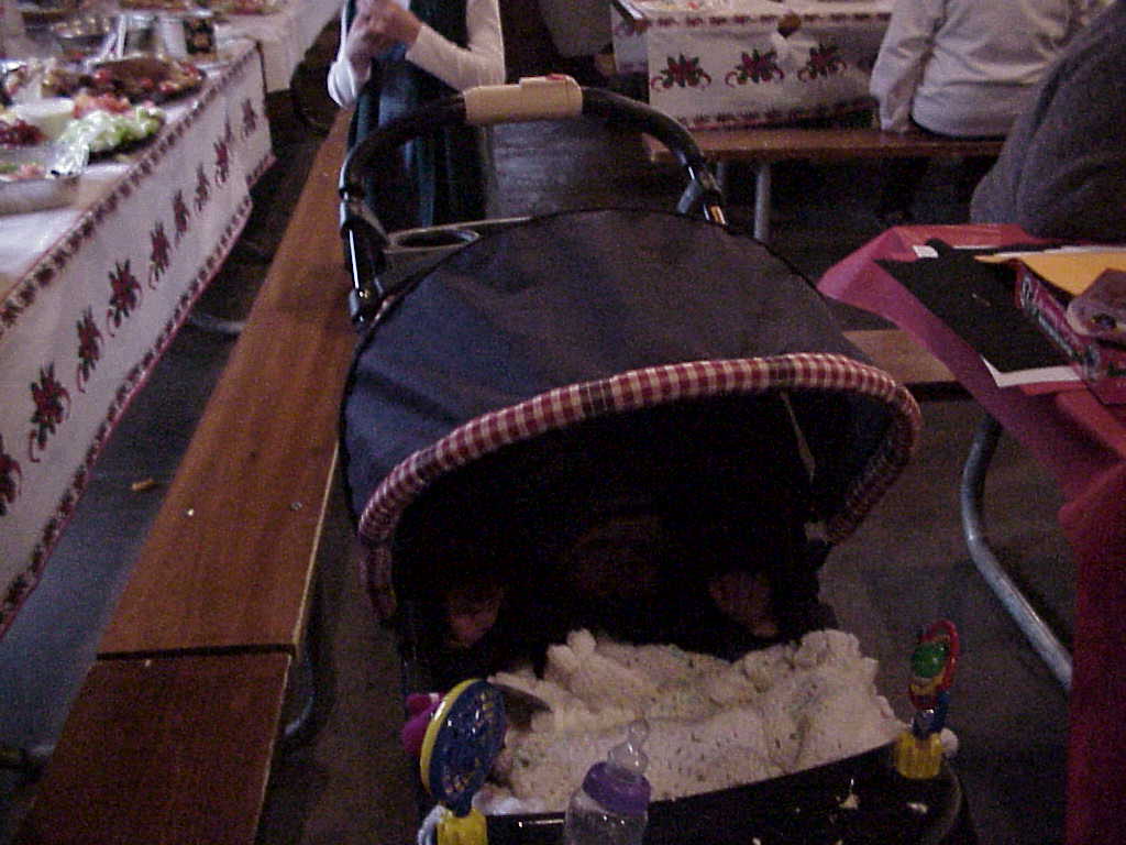 The crowd settles down for the "roast beast"